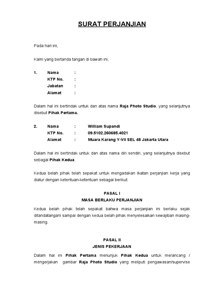 Contoh Surat Perjanjian Kontrak Kerja Yang Baik Dan Format Penulisan Yang Benar Surat Tulisan Kerja